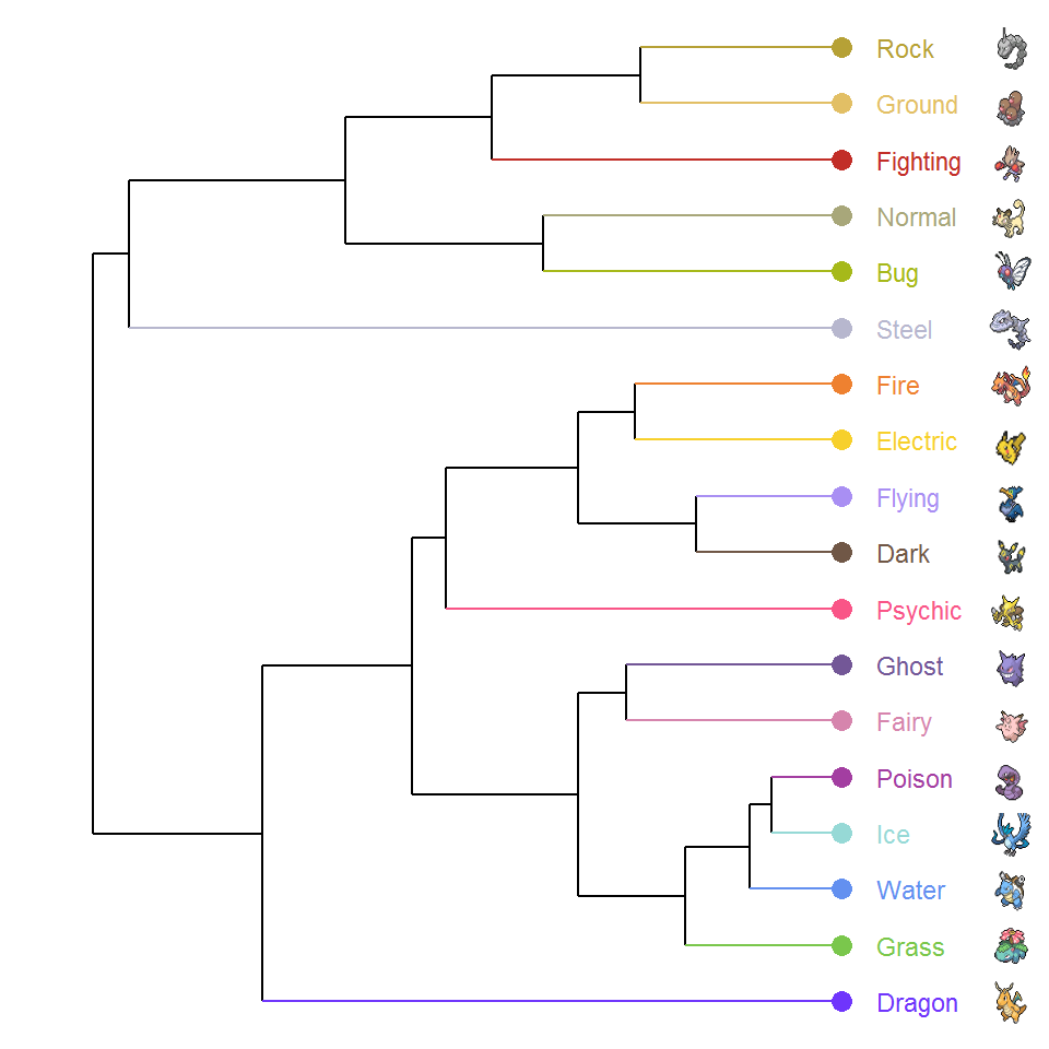Create a Pokemon phylogenetic tree in ggplot with the extension package ggdendro.